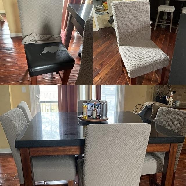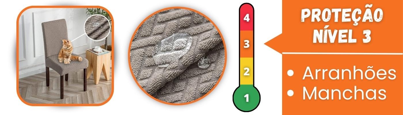 Nosso tecido resistente também proporciona proteção contra Arranhões e Manchas de gatos, cachorros ou crianças, preservando sua cadeira de jantar!